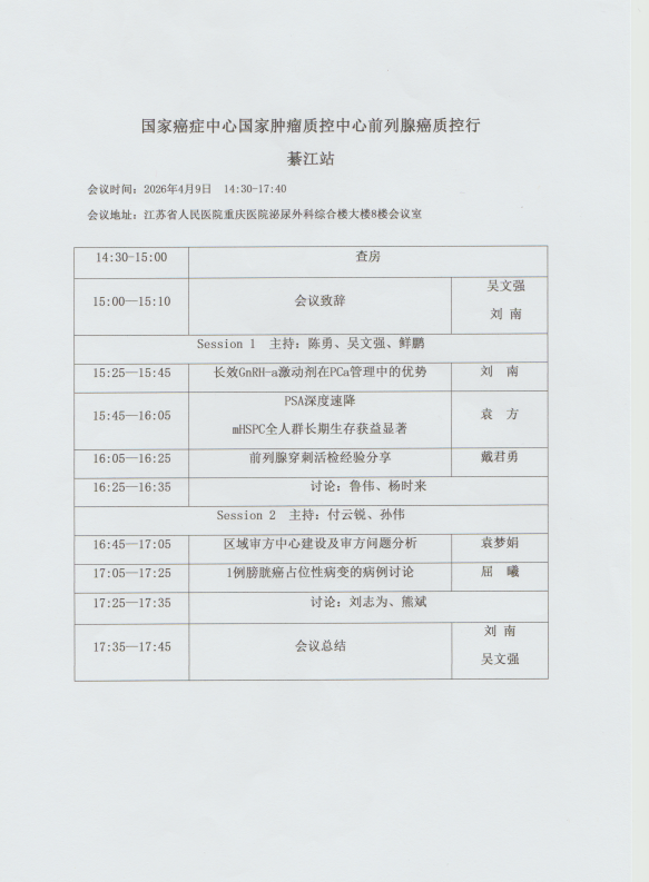 国家癌症中心国家肿瘤质控中心前列腺癌质控行--綦江站